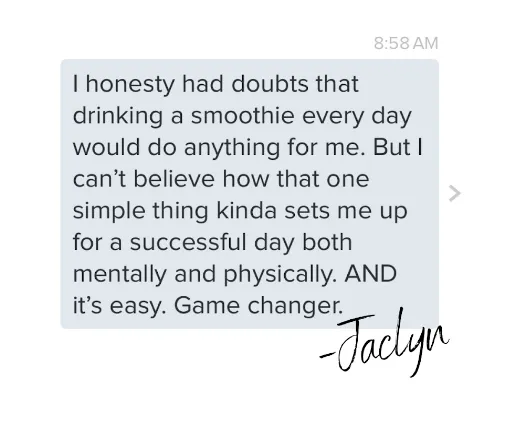 “I just love how Jackie’s approach to health helped slow me down a bit so that I didn’t do my typical thing of going all in and then burning out my body with trying to do too much at once. The smoothies are so good, keep me full, and really help fuel me for long days in the classroom."